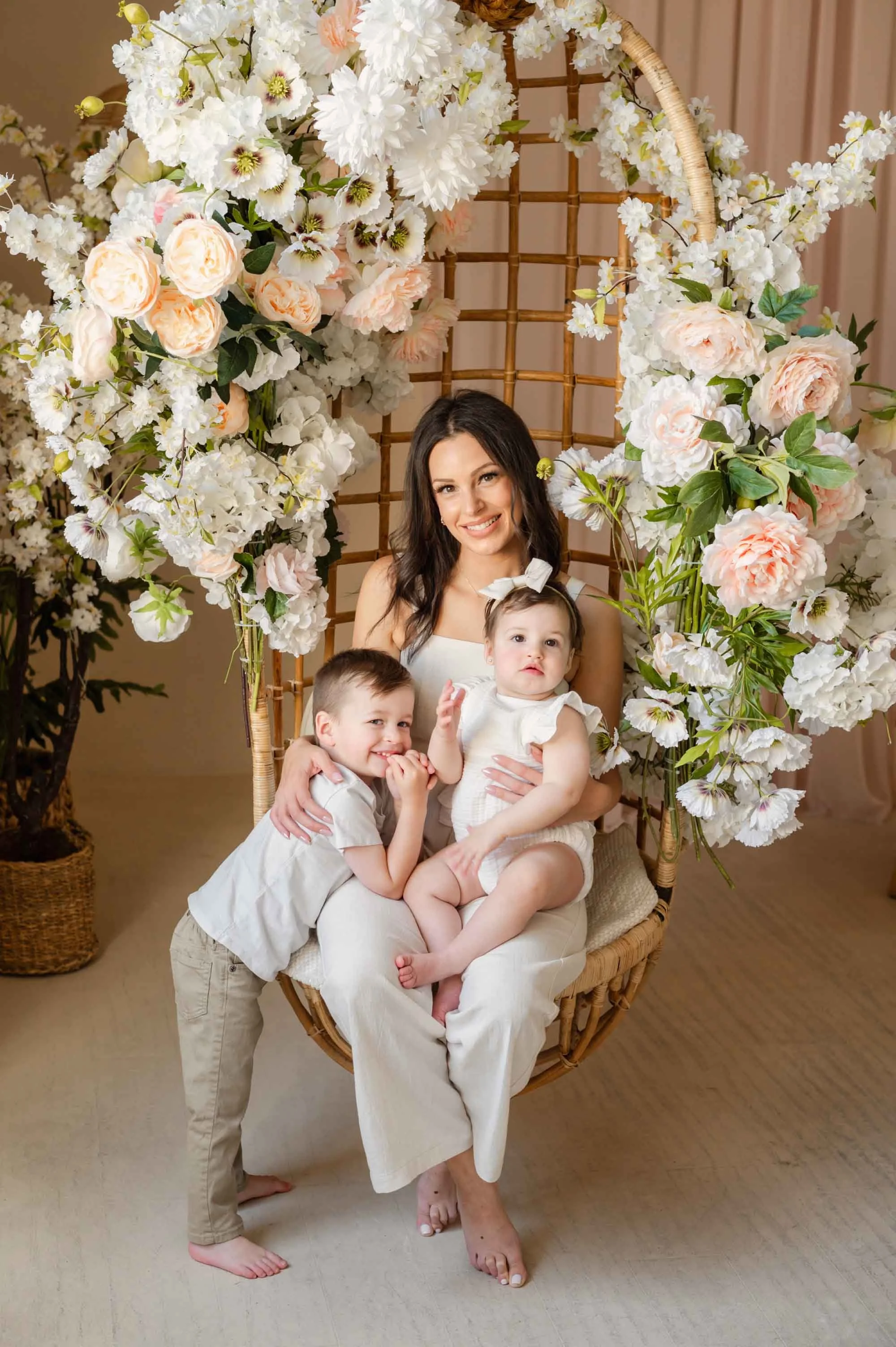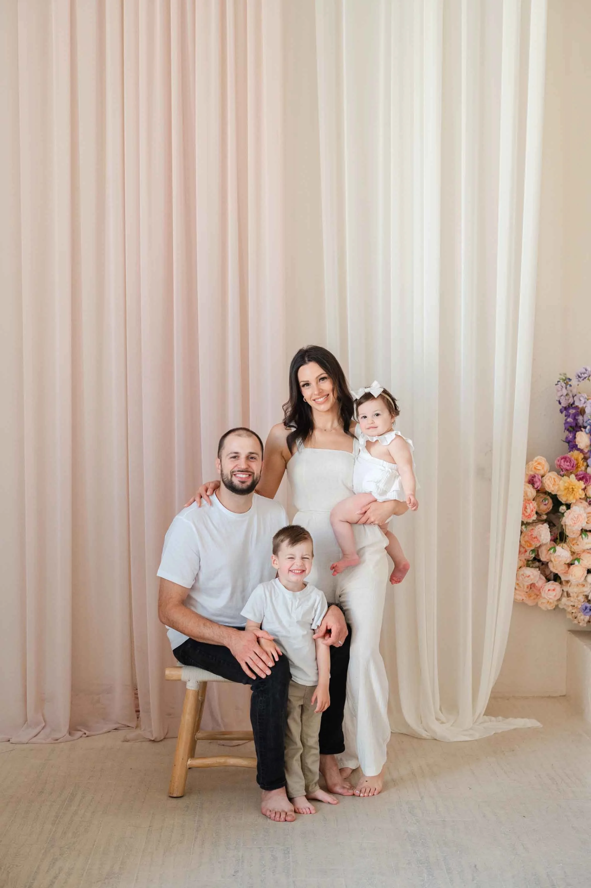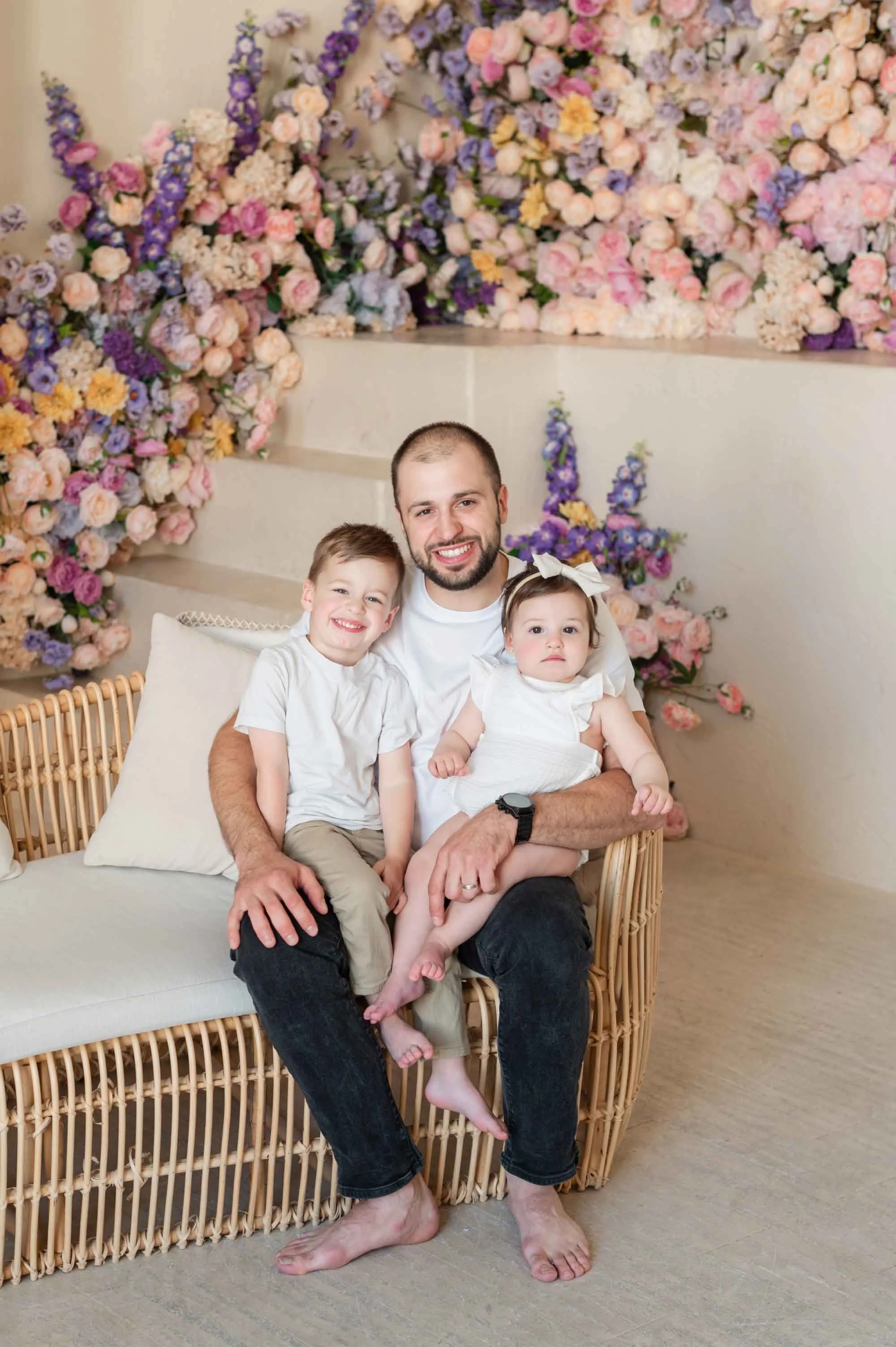 Our birthday girl arrived ready to shine, dressed in the sweetest outfit and already stealing hearts with her big, curious eyes. She was all smiles as we eased into family portraits, cuddling with mom, giggling with dad, and lighting up whenever her big brother came near. Watching him proudly dote on her was one of the highlights of the session—he brought so much energy and love to the room, making the photos feel lively and natural.