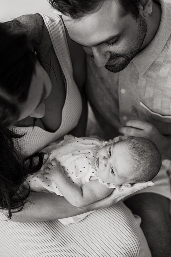 Their baby girl was calm and angelic, dressed in soft knits and neutral tones that allowed her delicate features to shine. The way her tiny hands curled into her parents’ fingers, or how she peacefully rested in their arms, was pure magic. Her parents radiated love and tenderness, sharing quiet smiles and gentle embraces as they embraced their new roles. I especially loved capturing those subtle yet powerful moments that often go unnoticed, like the sparkle in their eyes as they looked at her or the way they instinctively swayed while holding her close.