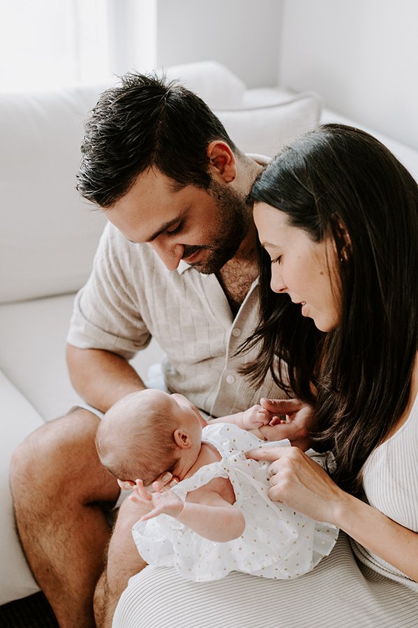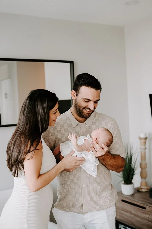 There is something truly heartwarming about returning to a family to capture the next chapter of their story, and this session was the perfect reminder of why I love what I do. I first met this wonderful couple during their maternity session, when they were eagerly awaiting the arrival of their baby girl. To be invited back into their lives to photograph their newborn session felt like such an honor, and it was so special to see their anticipation transform into pure joy as they welcomed their very first baby.