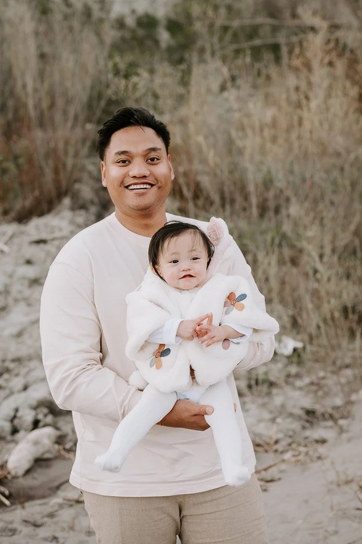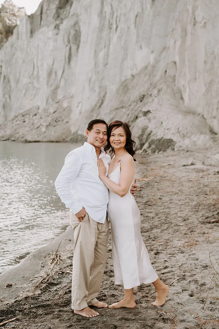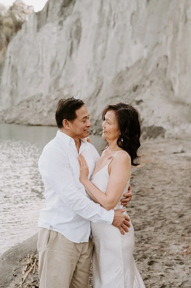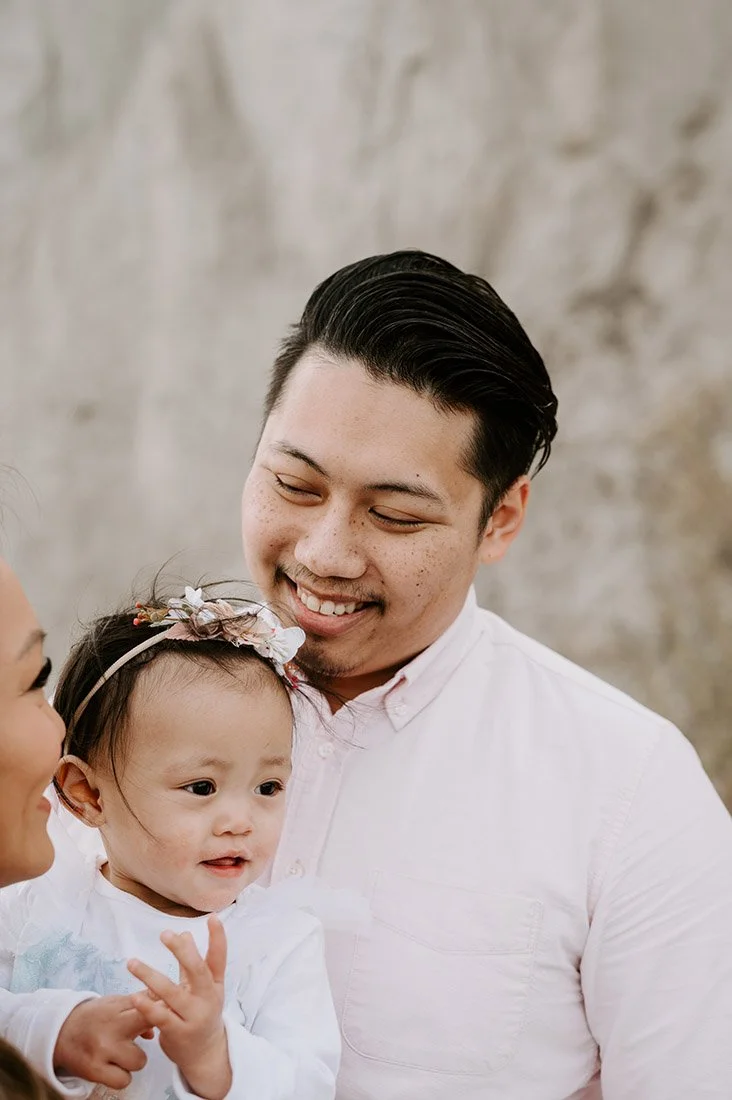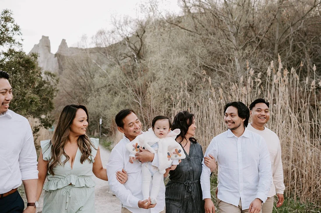 The family’s choice of a classic palette of whites and creams was absolutely timeless. Coordinated outfits like these bring a sense of elegance and cohesion to a gallery while still feeling natural and effortless. Against the textured cliffs and soft tones of the landscape, the neutral clothing allowed the focus to stay where it truly belongs—on the people, their love, and the genuine connections between them.