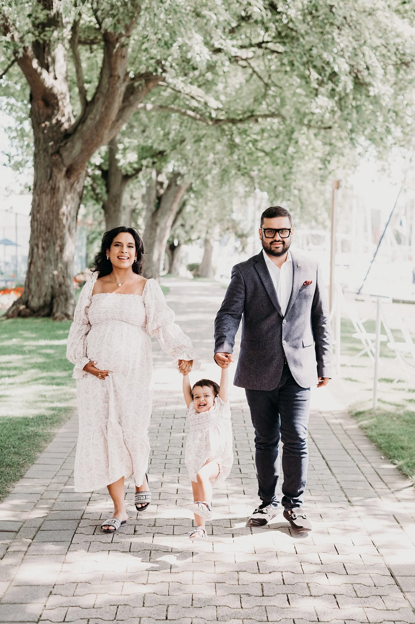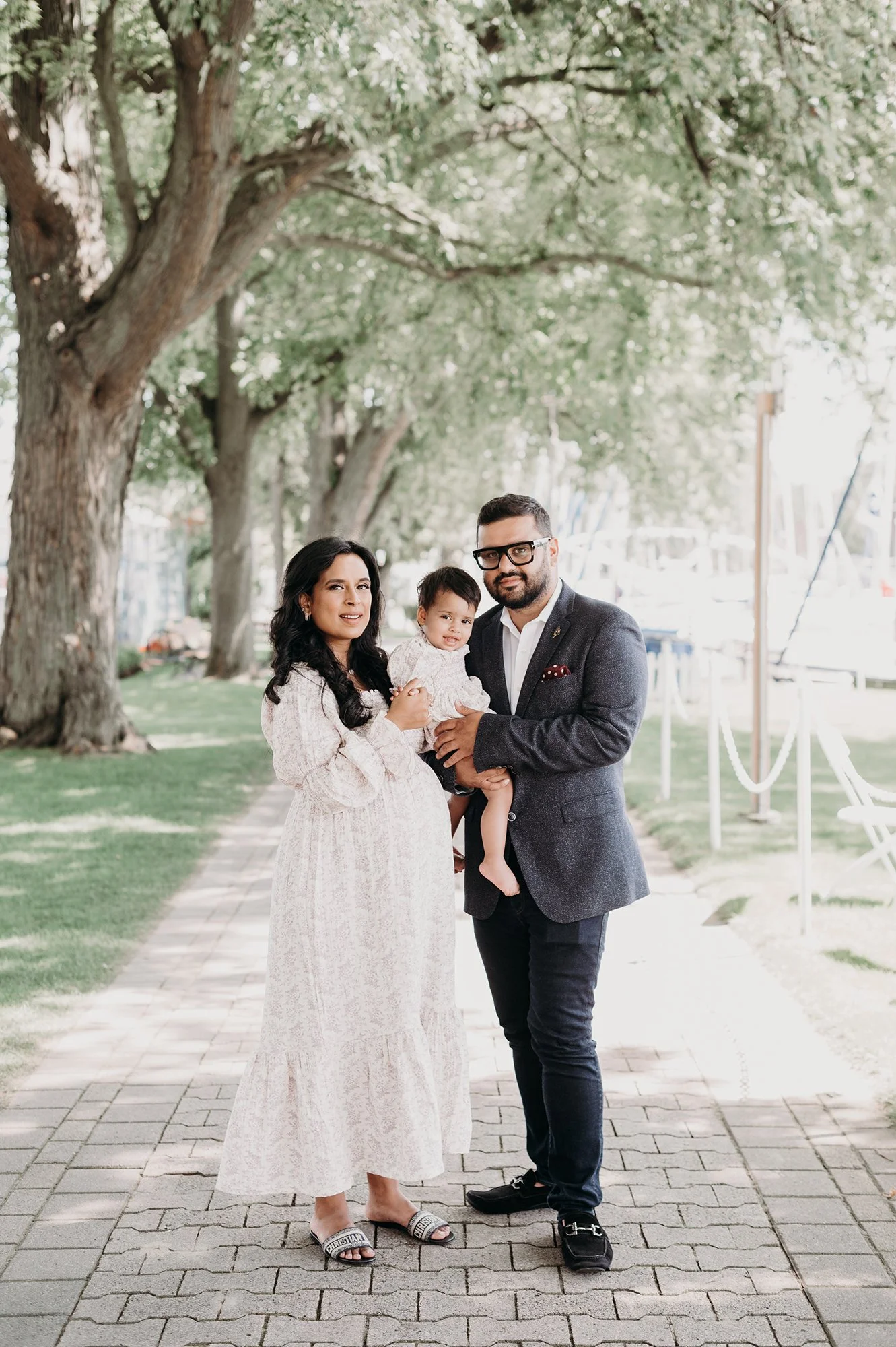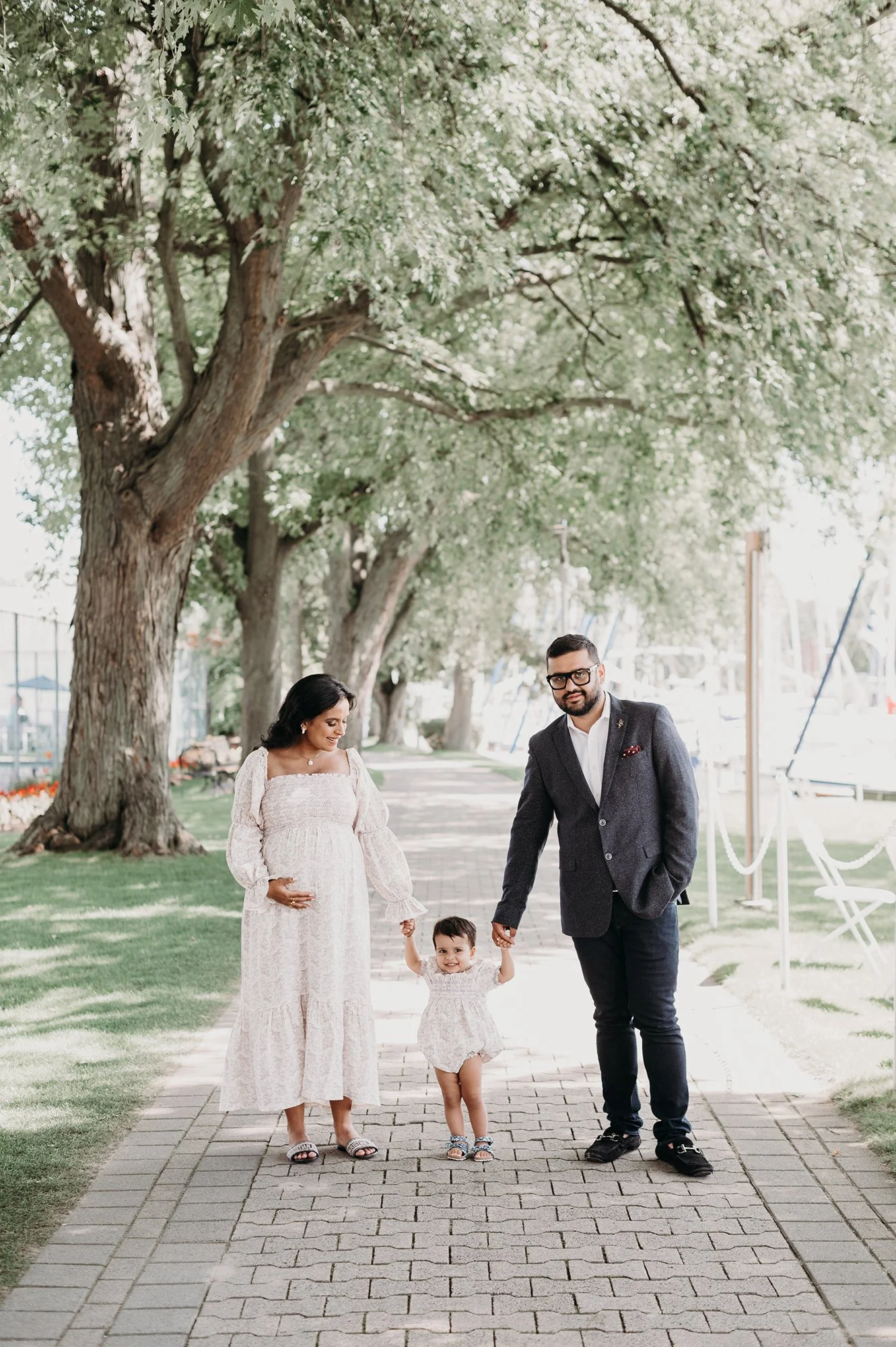 It is always such an honor to be invited back to photograph a family during these special milestones, and this session was no exception. This beautiful couple welcomed me to the Royal Canadian Yacht Club in Toronto for their second maternity session, and I was thrilled to capture their excitement as they prepare for the arrival of their second child. Having photographed them before, it was so special to see their growing family and the joy they bring to each other and their little one.