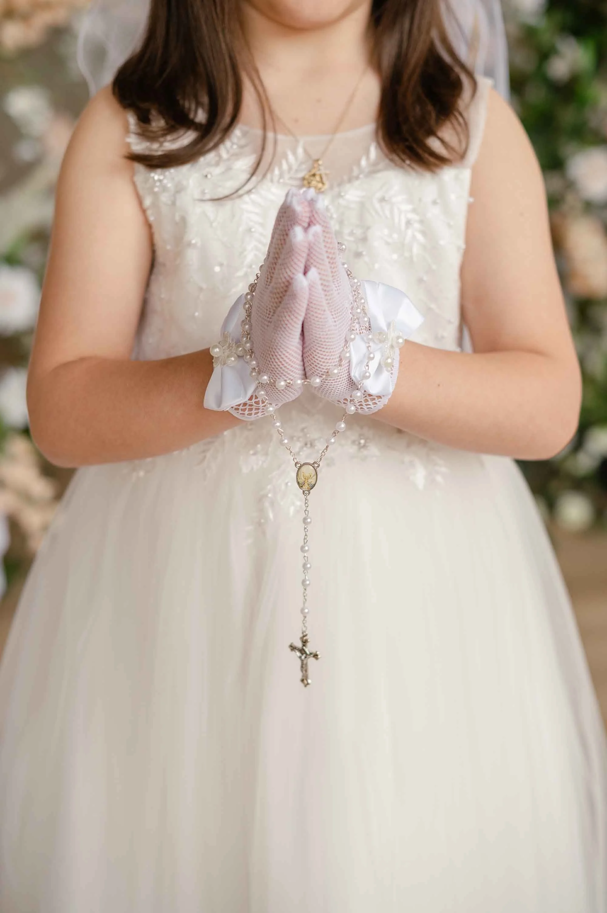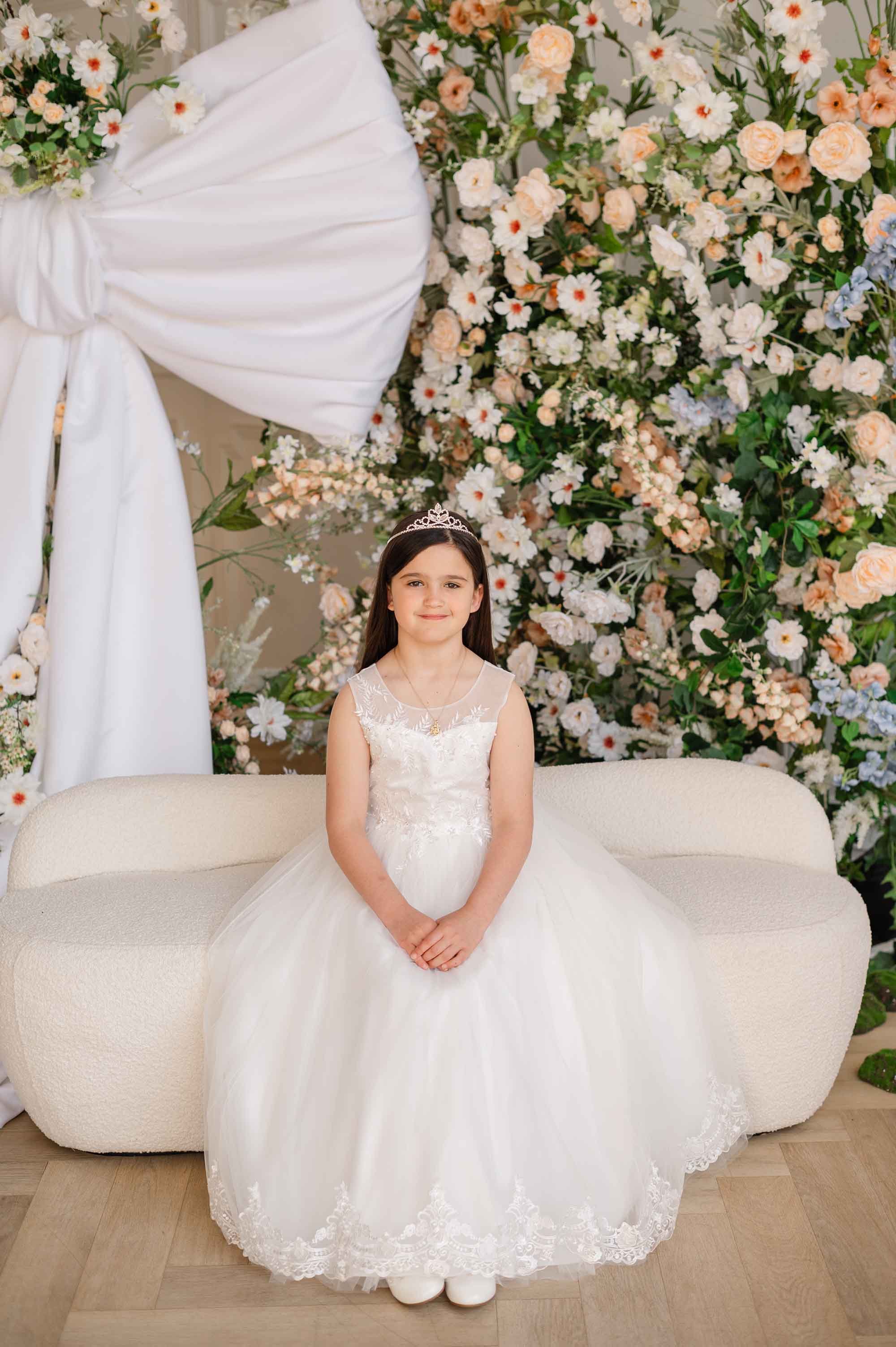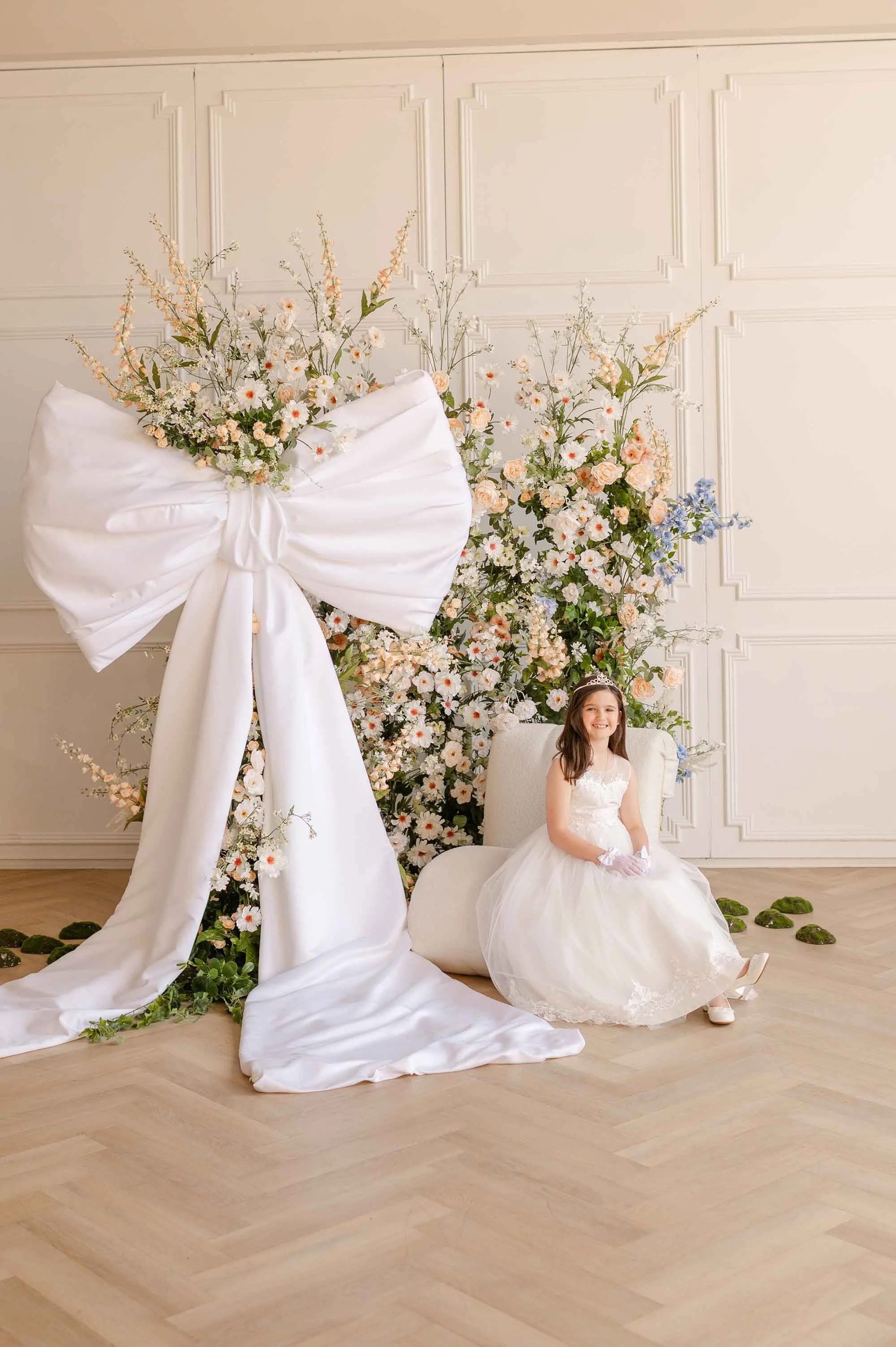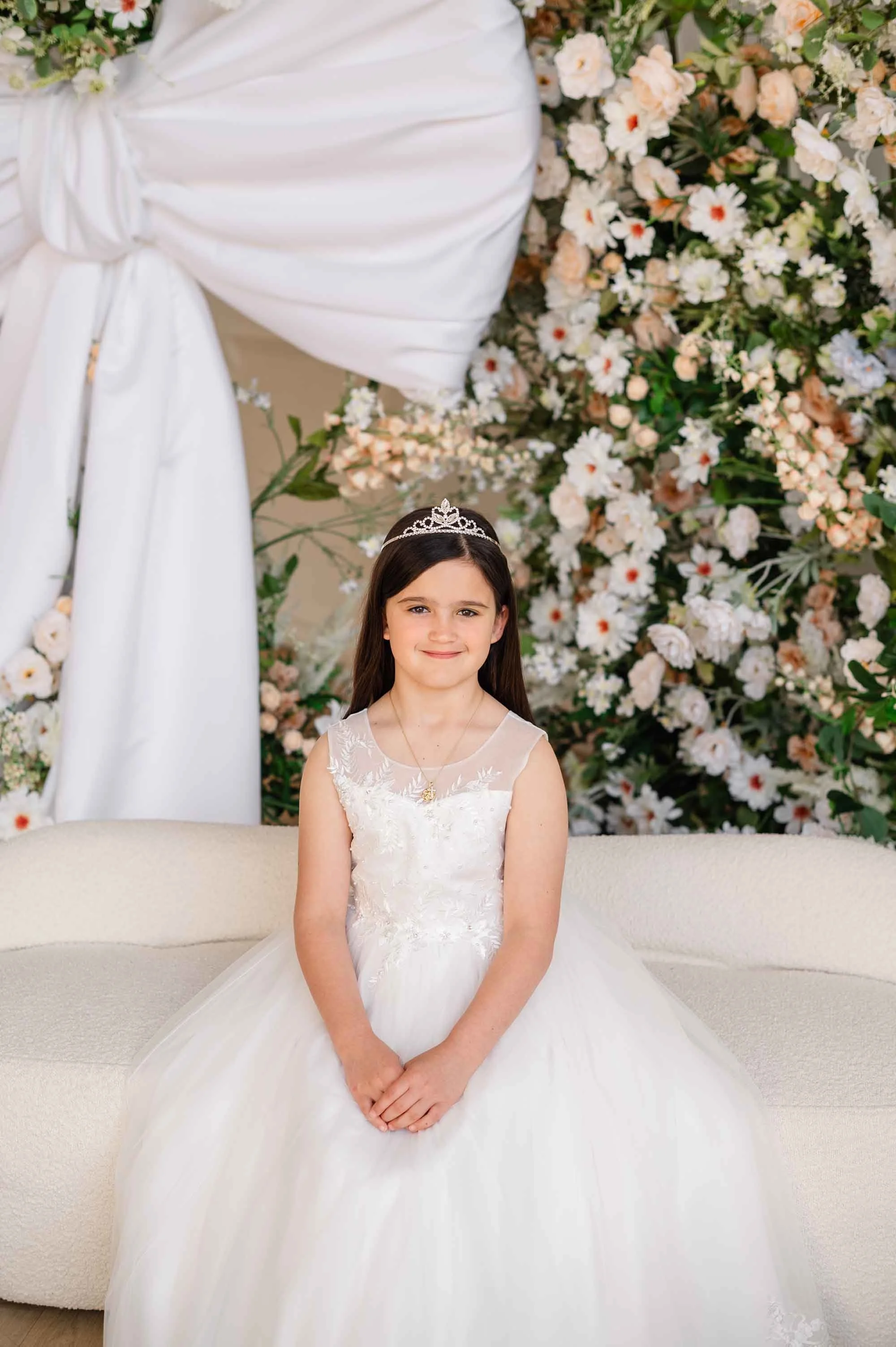 Photographing my own daughter’s first communion portraits was one of the sweetest and most meaningful experiences I have had as both a photographer and a mama. I wanted her to feel completely relaxed and able to enjoy every part of her special celebration, so we decided to photograph her portraits on a separate date from the ceremony. This allowed us to keep the actual communion day focused on the moment itself without any pressure or rush to fit in photos. It was the best decision. We were able TO be present and enjoy every second of her milestone.