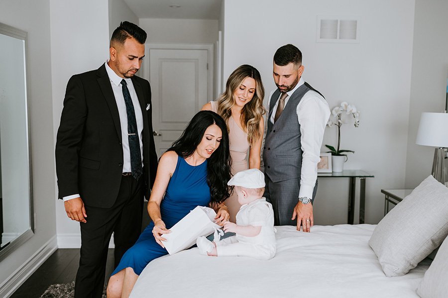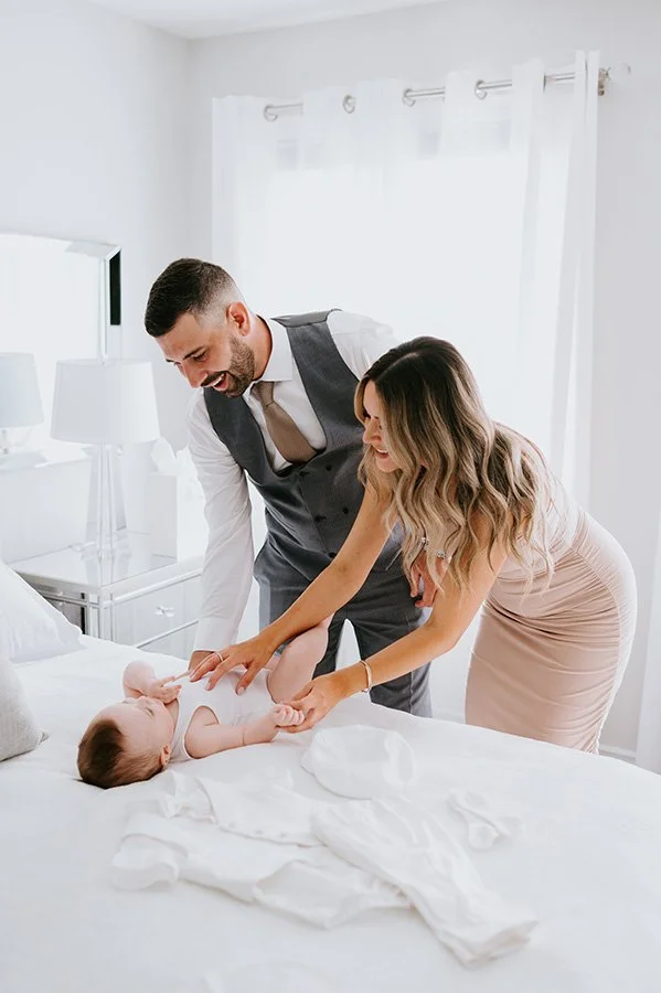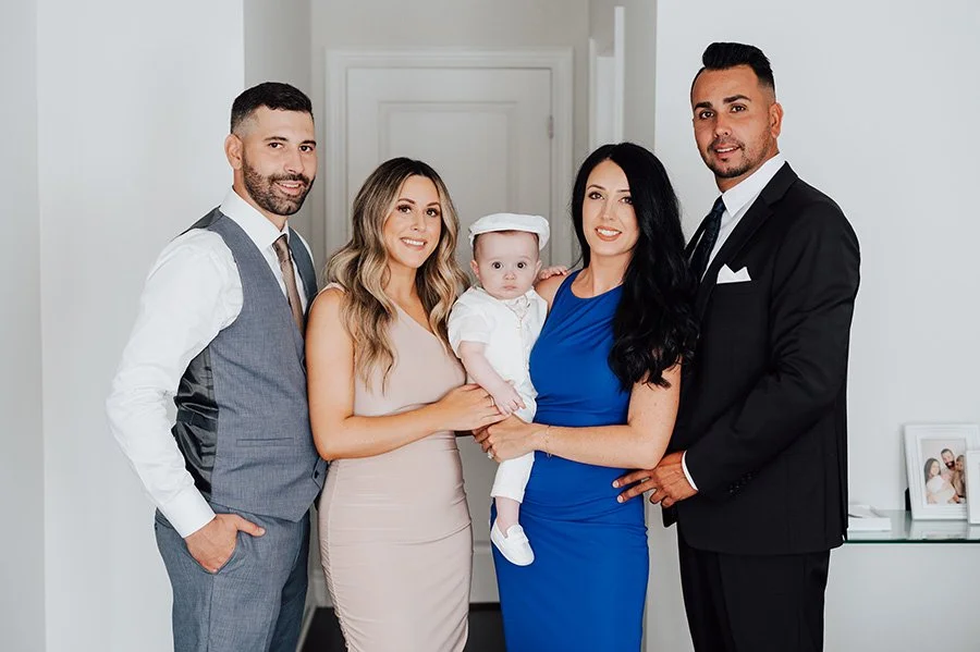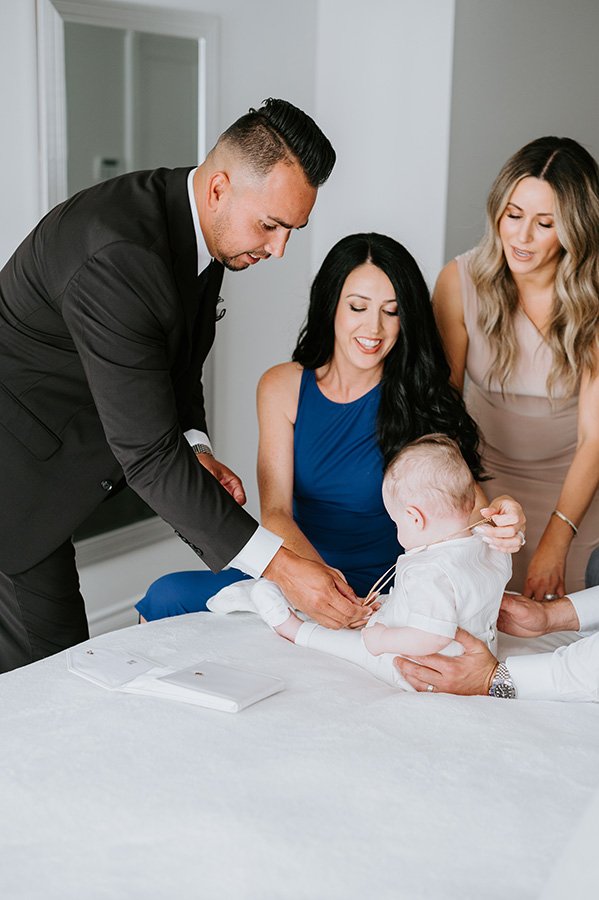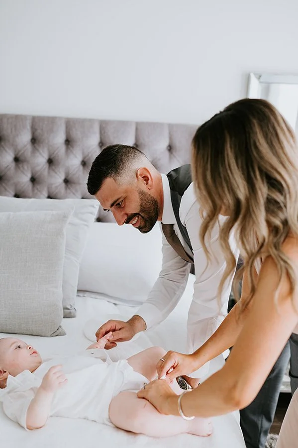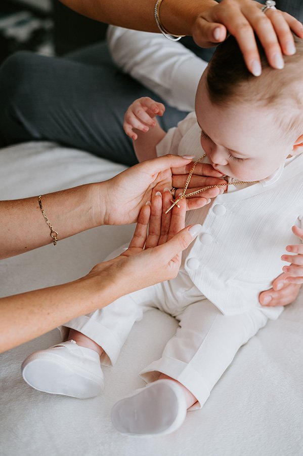 Once the details were captured, I moved on to documenting the getting ready moments. The parents and godparents helped dress the baby boy in his special outfit, and the room was filled with smiles and laughter as they worked together. These intimate moments often end up being some of the most cherished, because they reflect the love and support surrounding the child not only on this day but throughout his life.
