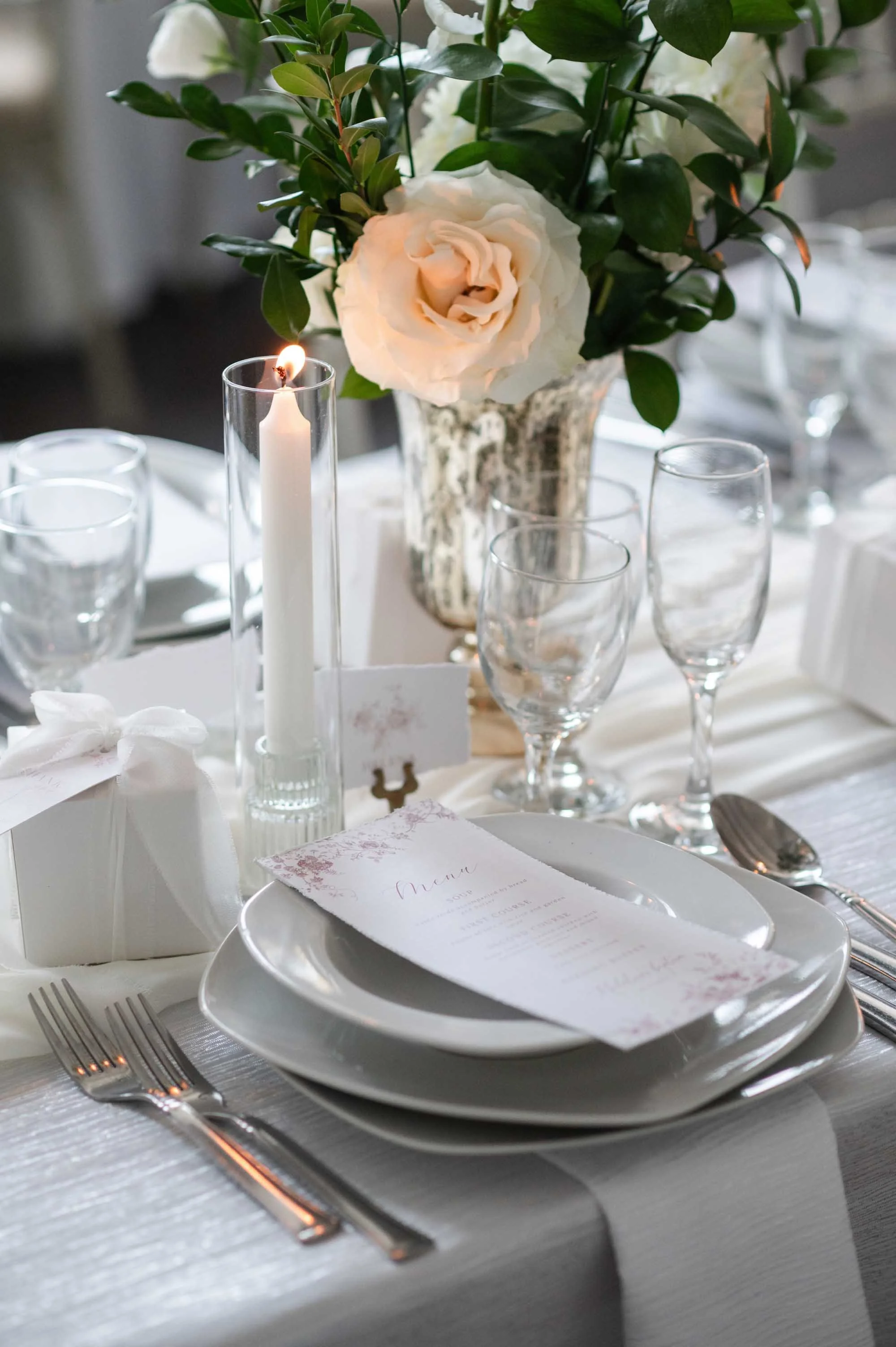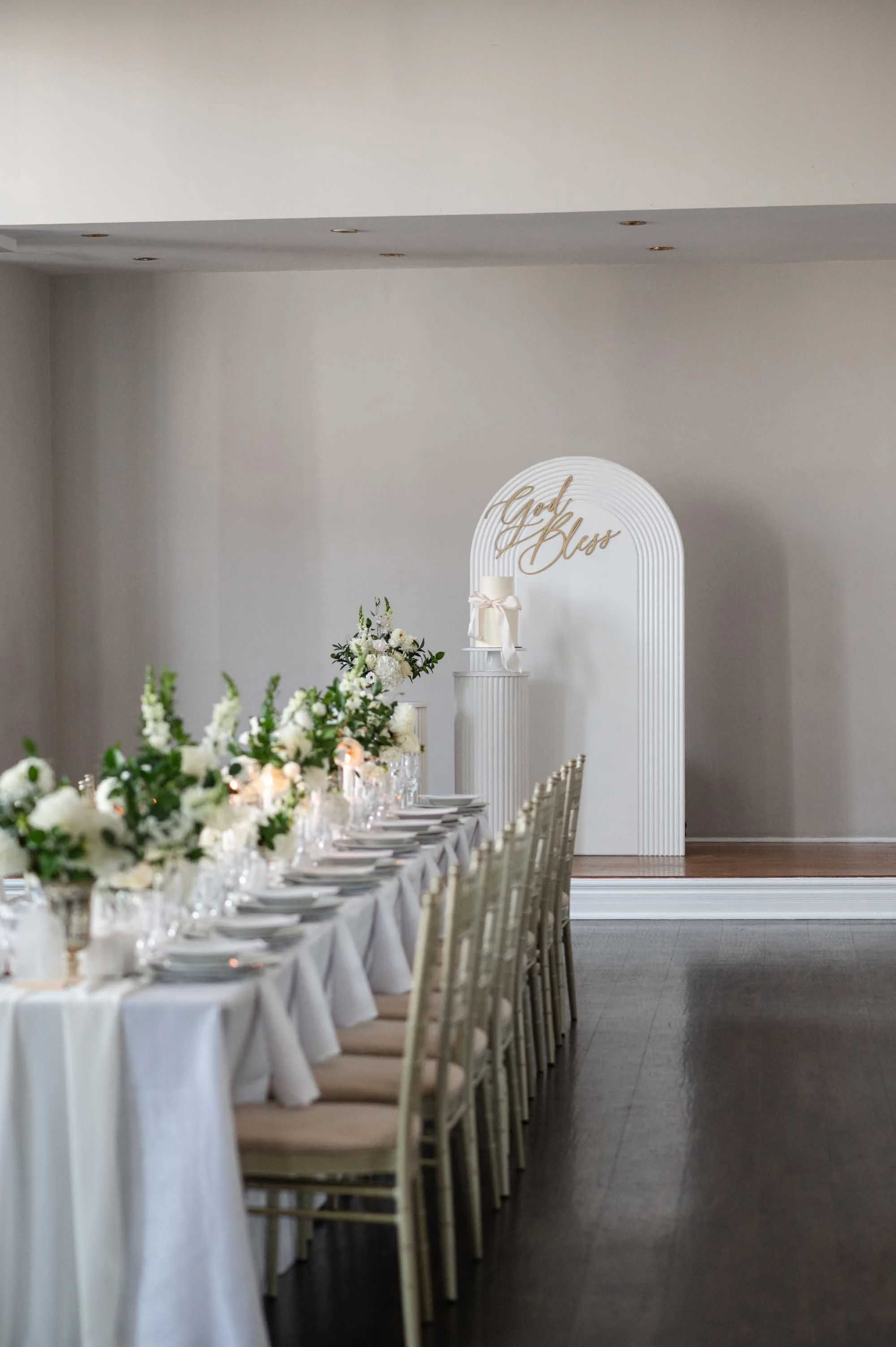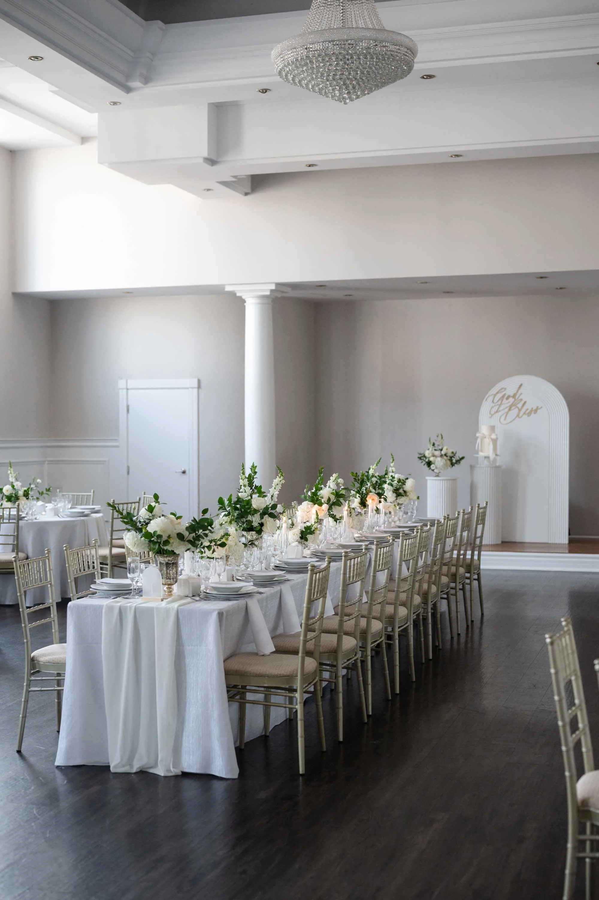 Following the church service, the celebration continued at Europa Convention Hall in Toronto, where the family hosted a beautiful reception. The space was decorated elegantly with white florals thoughtfully arranged by a close family friend. The floral arrangements brought a fresh, classic feel to the reception, adding softness and charm to every corner of the room.