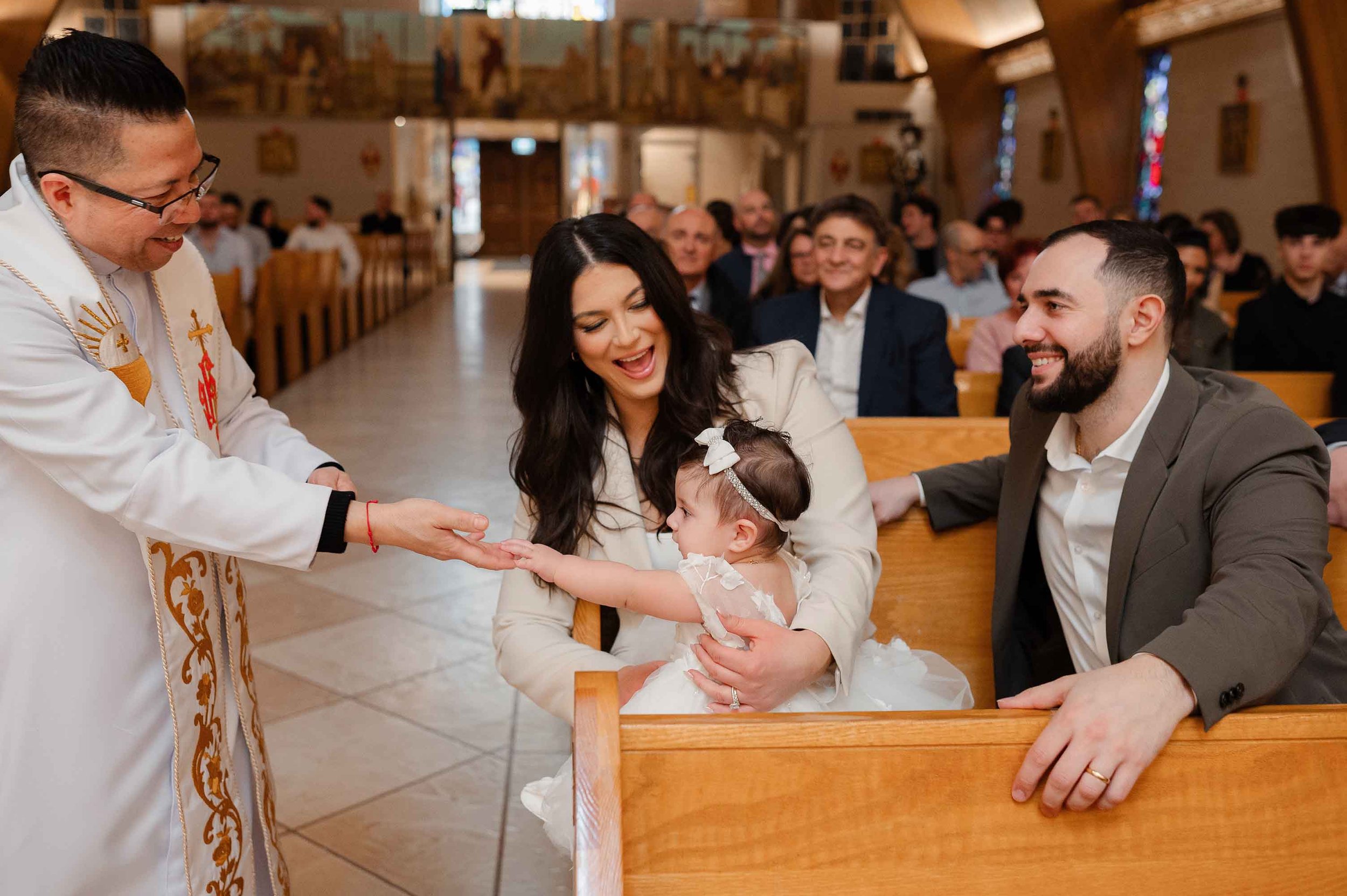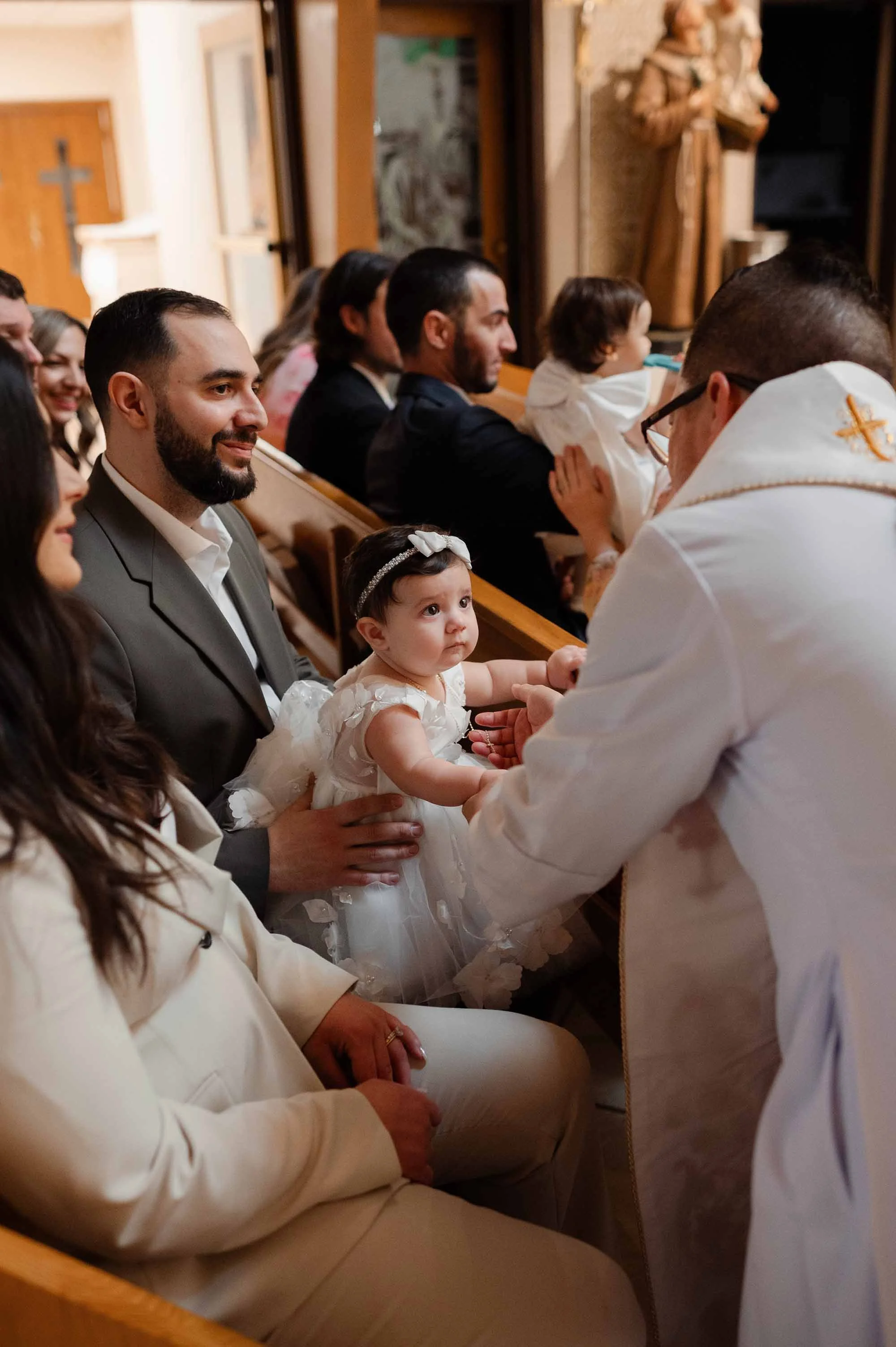 The Ceremony WAS AT St. Margaret Mary Roman Catholic Church IN WOODBRIDGE where close family and friends gathered to witness and celebrate this special sacrament. With her SWEET LITTLE gown, peaceful expression, and surrounded by love, the baby girl was an absolute vision. From candle lighting to the blessings, every part of the ceremony was filled with quiet reverence and emotional depth.