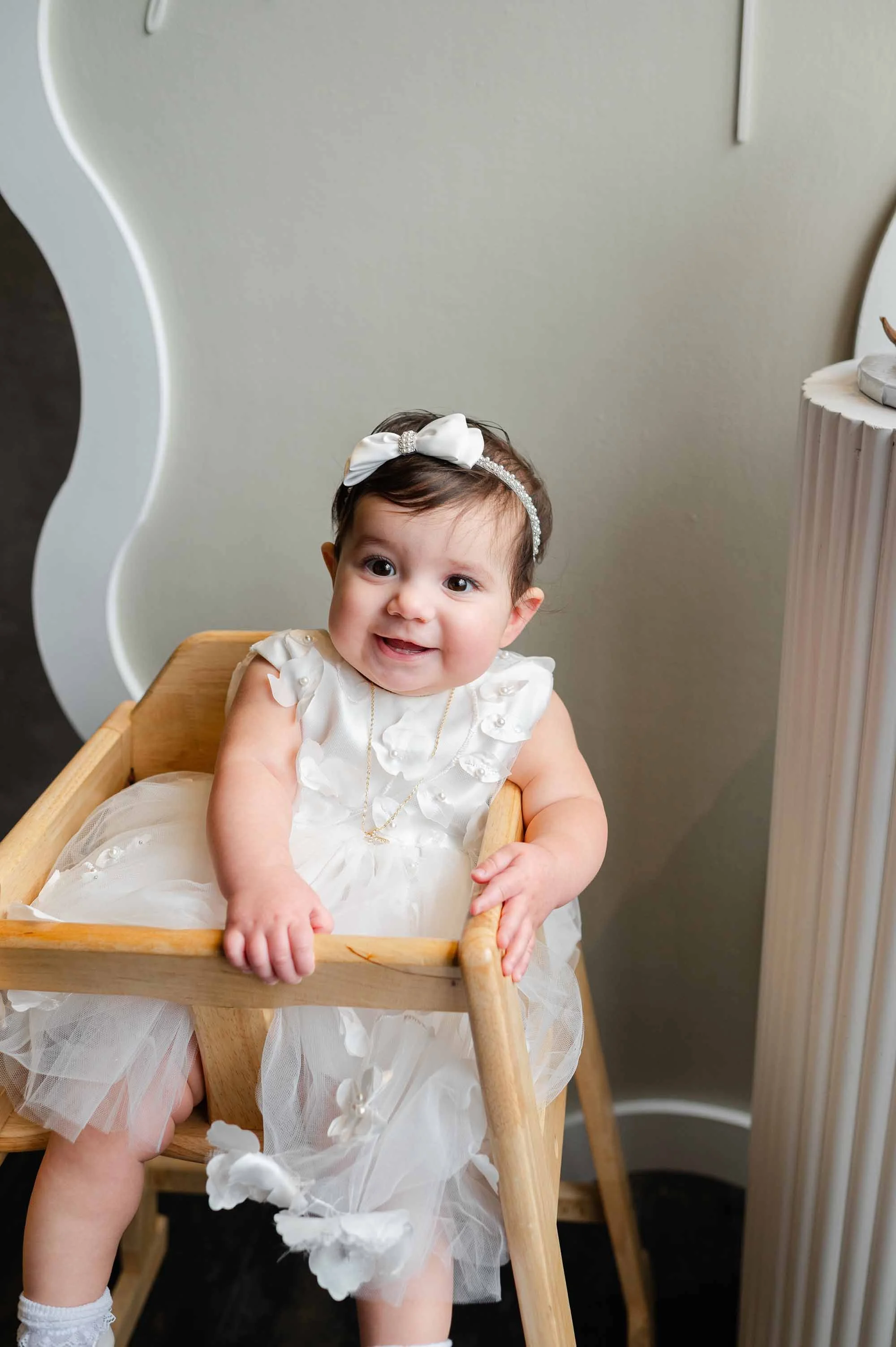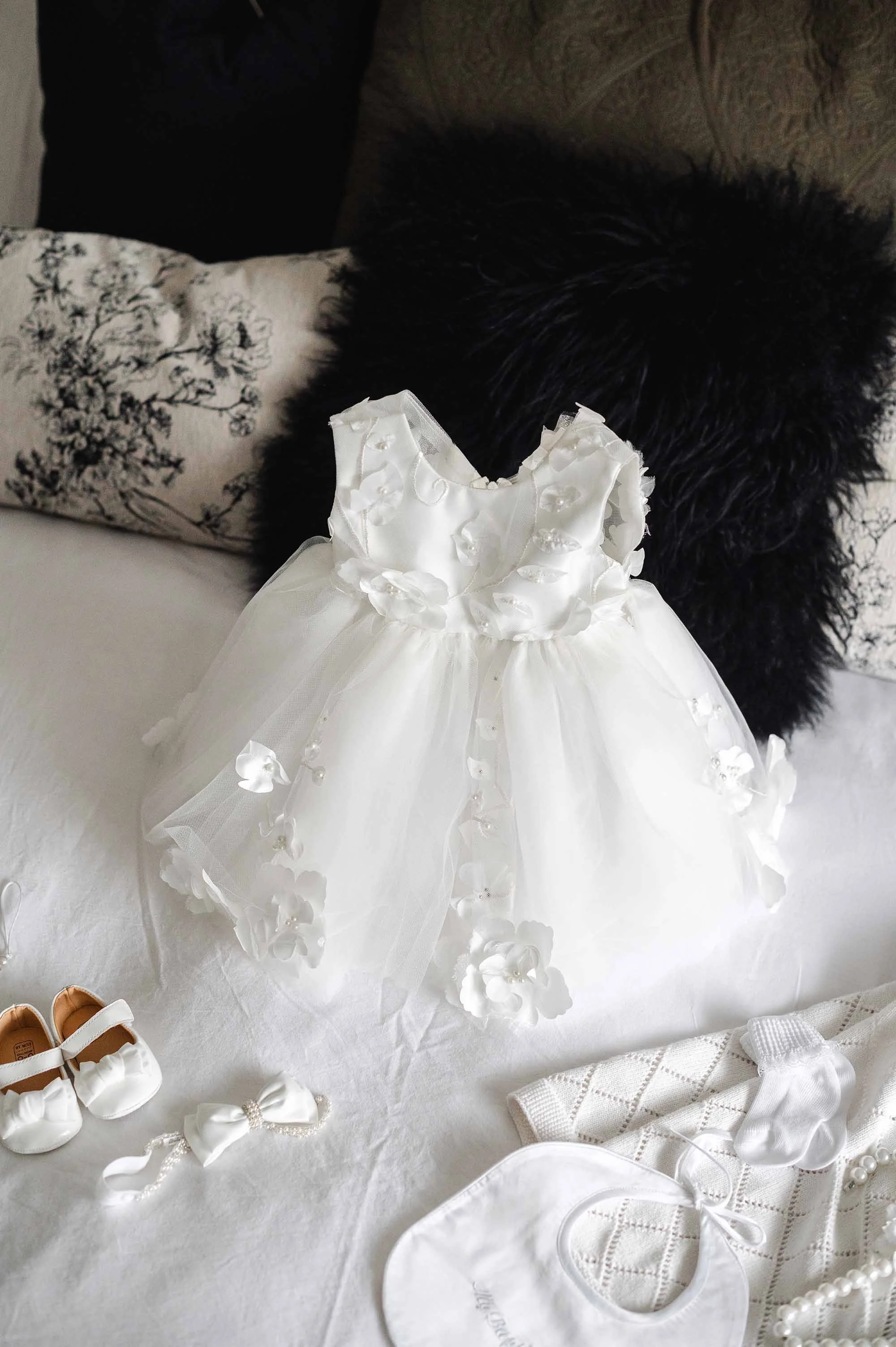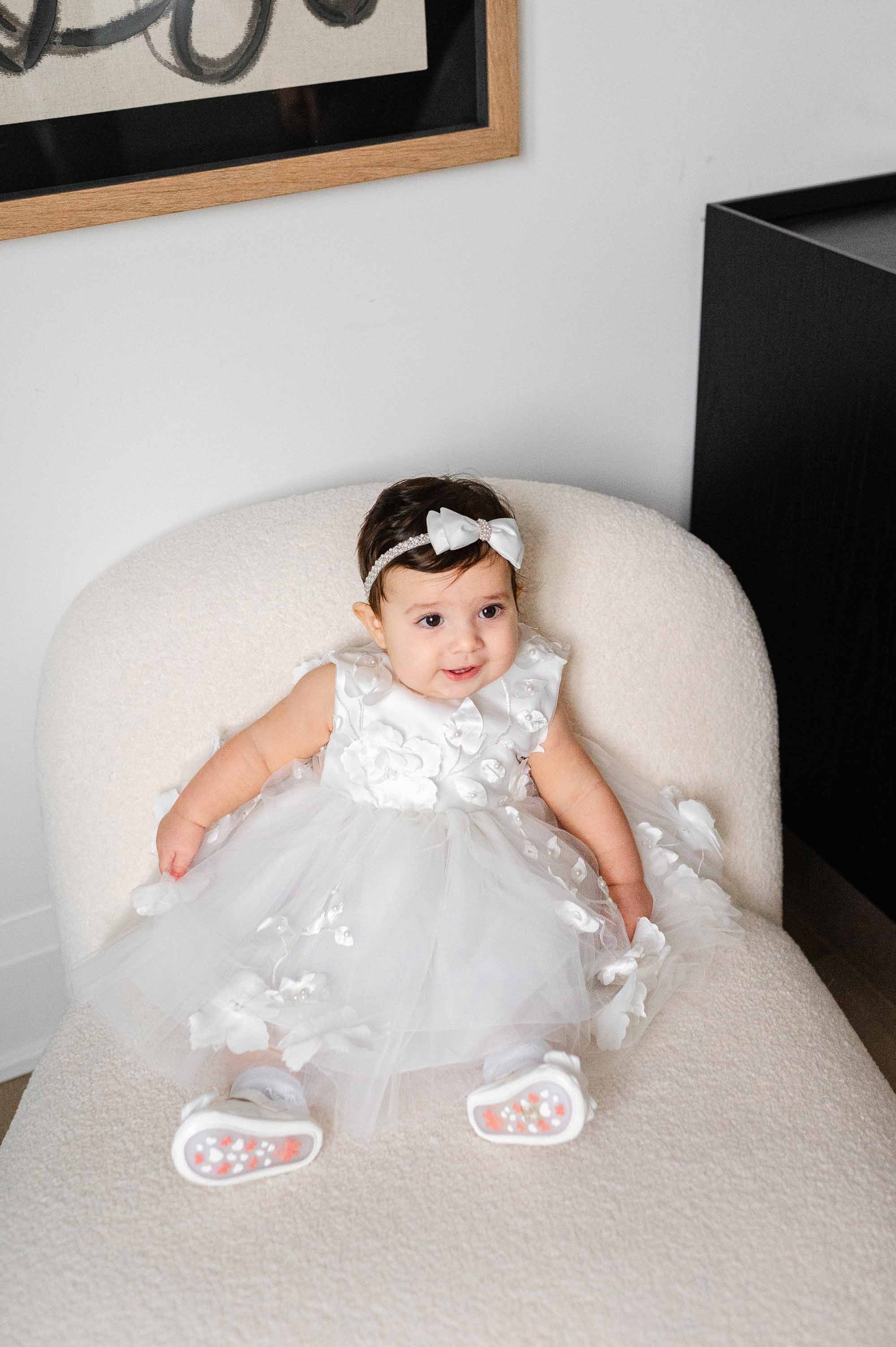 The day began at LAURA AND ANTHONY’S BEAUTIFUL HOME IN WOODBRIDGE, ONTARIO. I BEGAN WITH ALL OF THE SWEET DETAILS, INCLUDING ALESSIA’S DELICATE DRESS ADORNED WITH FLOWER PETALS. BABY GIRL WAS NOTHING BUT SMILES AND CERTAINLY WOWED BY HER DIAMOND CROSS, SHE COULDN’T WAIT TO GET HER HANDS ON IT!